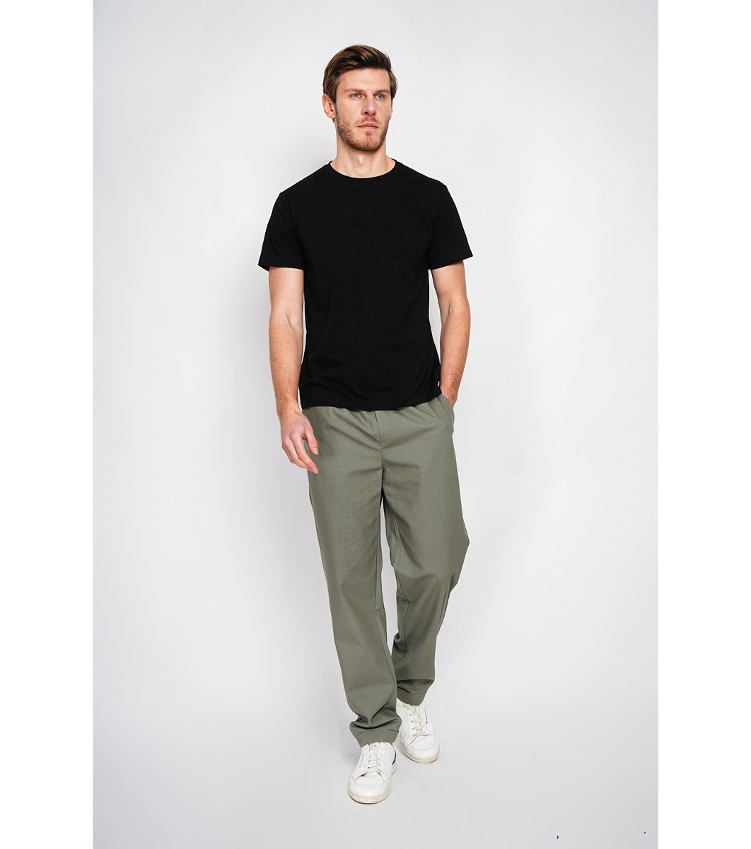Tricou negru cu buzunar, confecționat din in și bumbac