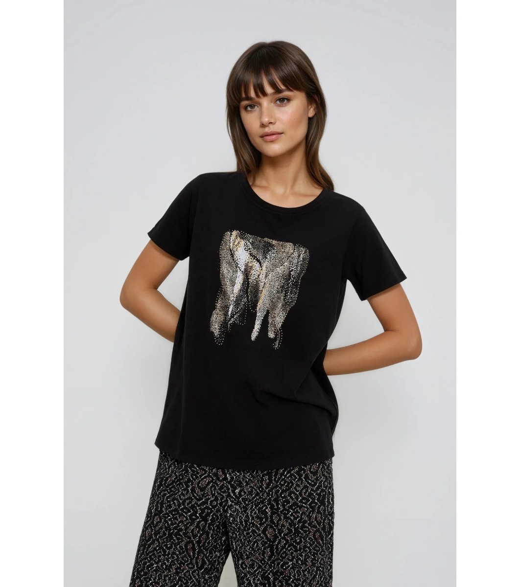 Tricou negru cu imprimeu cu elefant