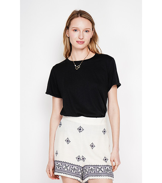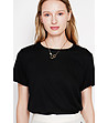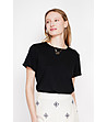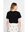 Tricou negru cu mânecă scurtă, confecționat din in și bumbac