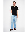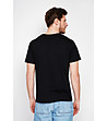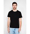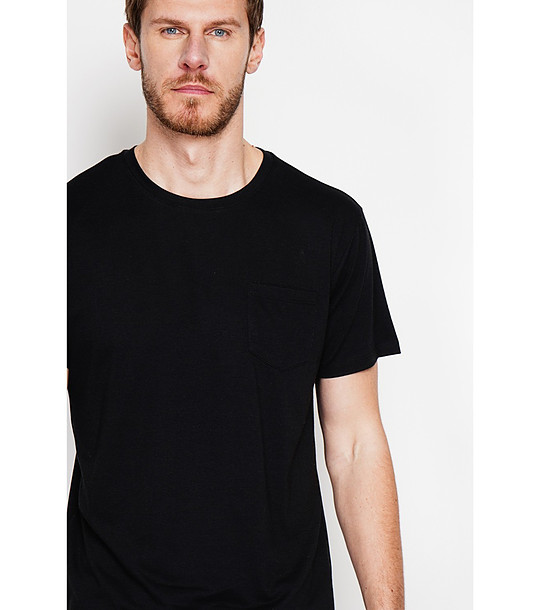 Tricou negru cu mâneci scurte și buzunar, confecționat din in și bumbac