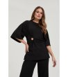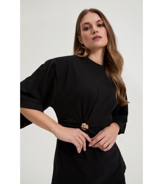 Moodo Tricou negru de damă cu aplicație decorativă Tricou de damă cu croială dreaptă și lejeră