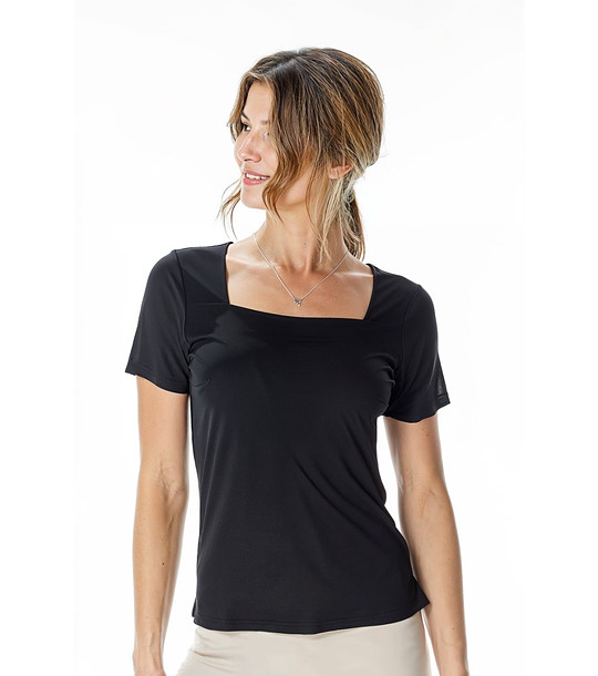 Tricou negru de damă cu decolteu pătrat