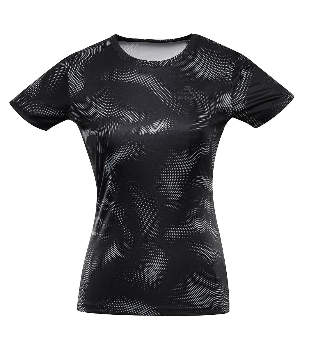 Alpine Pro Tricou negru de damă cu imprimeu QUATRA Decolteu rotund