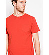 Tricou roșu cu buzunar, confecționat din in și bumbac