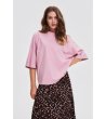 Tricou roz din bumbac pentru femei, cu mâneci largi