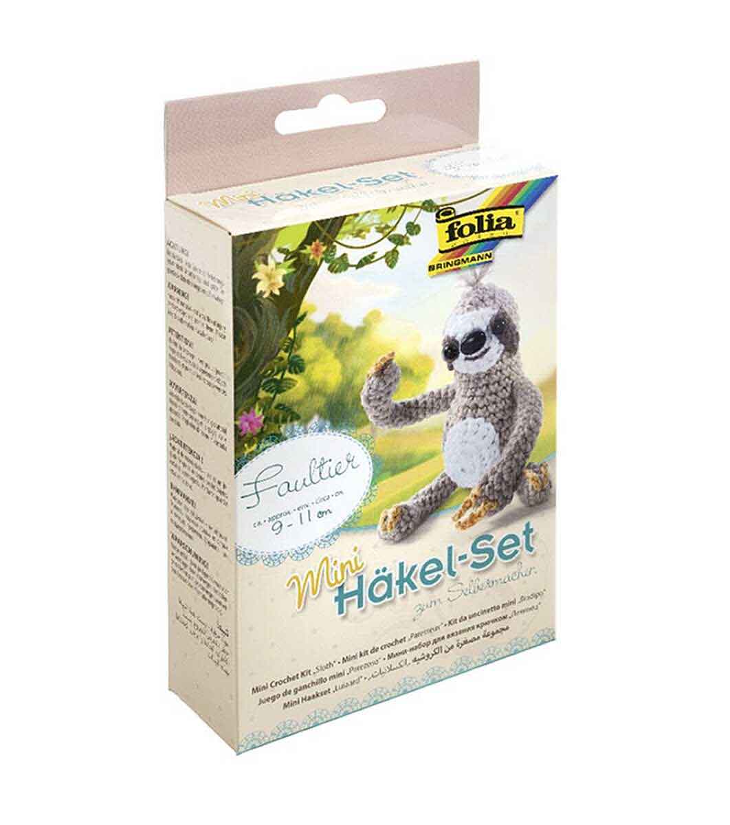 Folia Trusă de tricotat pentru o jucărie, Lenes Tricotarea este o activitate ușoară și plăcută, iar cel mai bun lucru este că poți face orice copil fericit cu o jucărie tricotată și colorată pe care o faci. Setul este potrivit atât pentru pasionații de tricotat, cât și pentru începătorii absoluti. Setul include suficiente materiale pentru a face 1 bucată. mărimea leneșului 9-11 cm: 1 cârlig de tricotat; 2 buc. ochi; 10 g vată pentru umplutură; in functie de set - minim 15 g fire de lana sau bumbac in culori potrivite, instructiuni in engleza si germana.