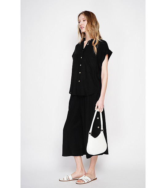 Tunică neagră din in cu nasturi