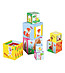 Zece cuburi de dimensiuni și culori diferite, pe fiecare dintre ele veți găsi imagini cu animale, unde trăiesc și ce le place să mănânce. Pe o parte a cuburilor, copiii vor avea ocazia să exerseze numărarea de la 1 la 10. Copiii vor putea construi un turn înalt de 106 cm cu cele zece cuburi și apoi îl vor împinge iar și iar. Toate cuburile pot fi puse unul în celălalt. Jucăria dezvoltă motricitatea fină, observația și imaginația copilului dumneavoastră. În timpul jocului, el se va familiariza cu animalele, va aranja un puzzle, va încerca să numere și să învețe numerele de la 1 la 10. Setul este format din: 10 piese.