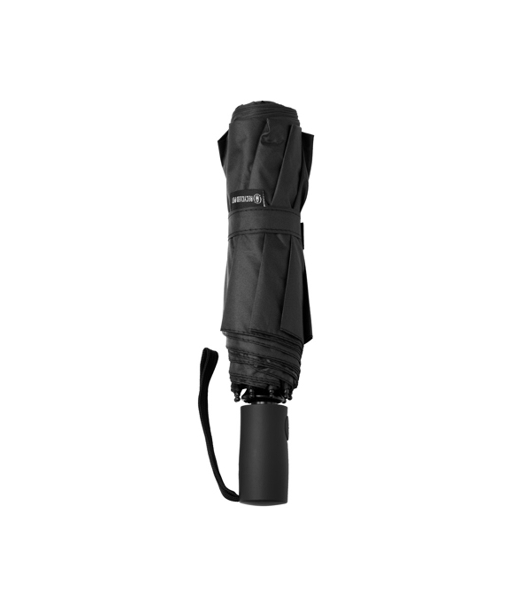Stamina Umbrelă compactă neagră, rezistentă la vânt, cu protecție UV ELBERT Umbrelă pliabilă din RPET cu protecție ultravioletă. Deschidere și închidere automată. Material pongee 190T cu protecție UV SPF50.