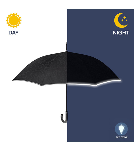 Umbrelă mare de damă, neagră, cu margine reflectorizantă