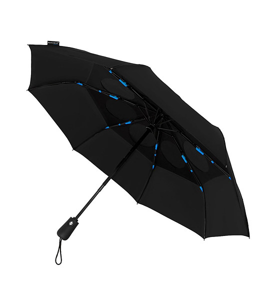Impliva Umbrelă neagră mare, rezistentă la vânt, din poliester reciclat Umbrelă pliabilă cu deschidere automată