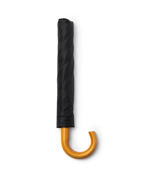 Stamina Umbrelă neagră pliabilă automată KODIAK Umbrelă fabricată din RPET (poliester reciclat) cu țesătură pongee 190T și mâner din lemn natural, o opțiune elegantă și durabilă pentru a vă proteja de ploaie. Țesătura pongee 190T este durabilă și hidrofugă, oferind o bună protecție împotriva ploii.