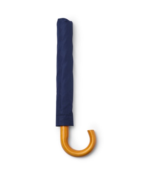 Stamina Umbrelă pliabilă automată KODIAK bleumarin O umbrelă fabricată din RPET (poliester reciclat) cu material pongee 190T și un mâner din lemn natural este o opțiune elegantă și sustenabilă pentru a vă proteja de ploaie. Materialul pongee 190T este durabil și hidrofug, oferind o bună protecție împotriva ploii.