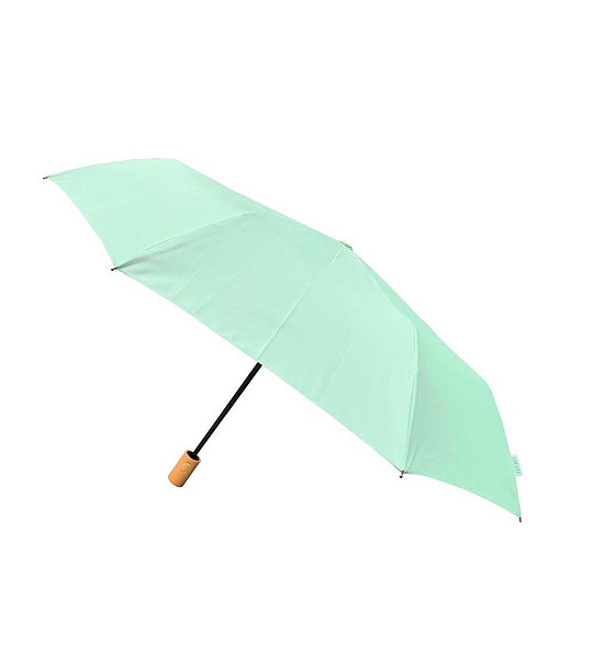 Umbrelă pliabilă verde deschis cu mâner din lemn