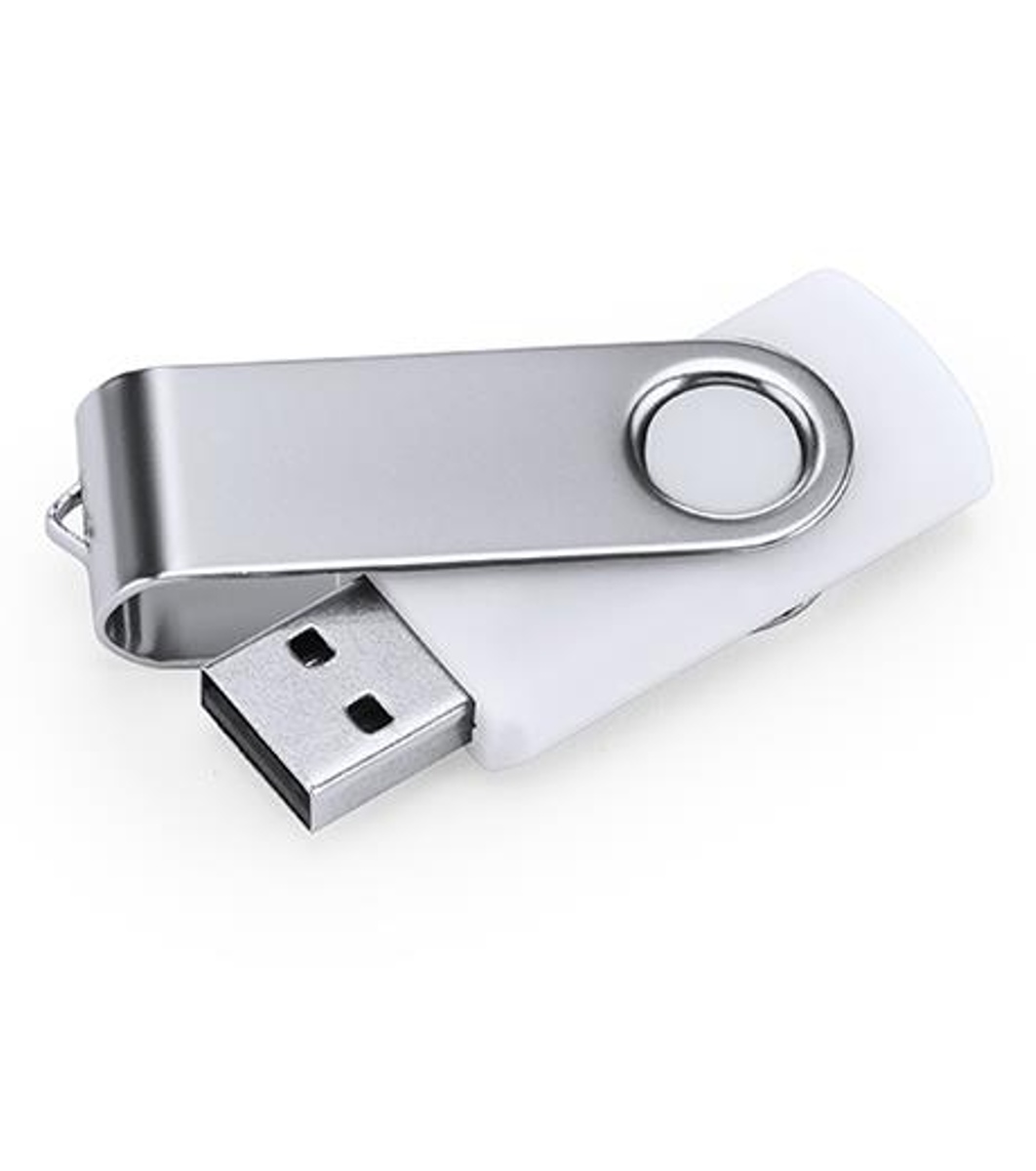 Stamina Unitate flash MARVIN albă, 32 GB Memorie USB 2.0 cu design clasic, carcasă ABS și clemă rotativă metalică.