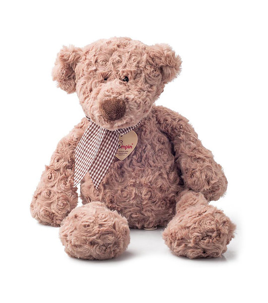 Jucăria are ochii prinși în siguranță și un pandantiv din material textil cu logo-ul de brand Lumpin.