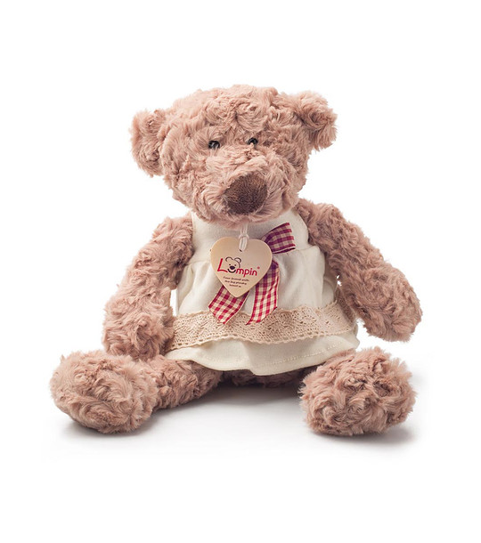 Jucăria are ochii prinși în siguranță și un pandantiv din material textil cu logo-ul de brand Lumpin.