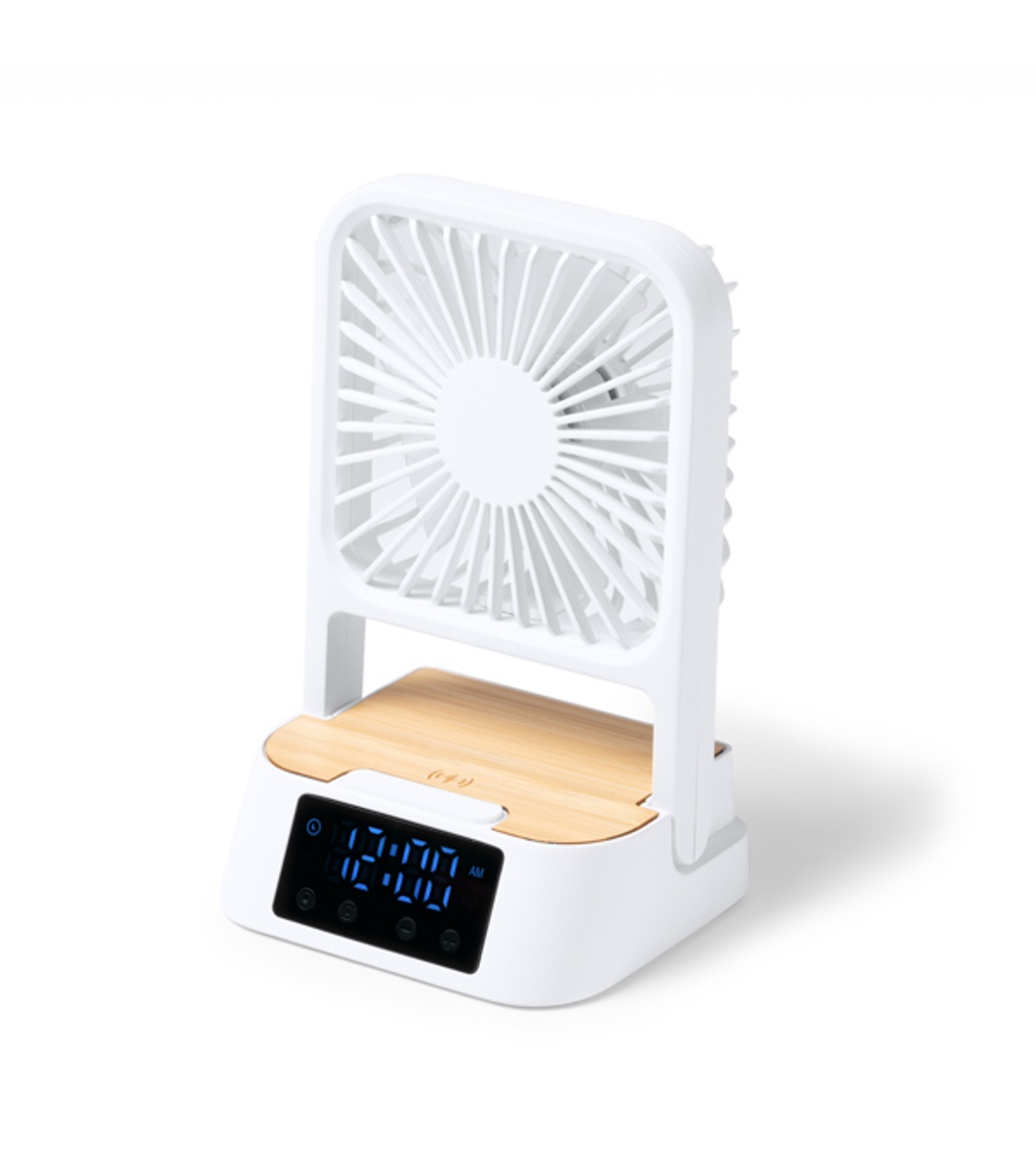Ventilator de birou FUYI cu încărcător wireless și ceas, alb