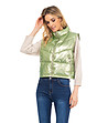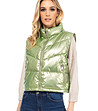 Tantra Vestă scurtă verde de damă cu efect metalic Guler înalt