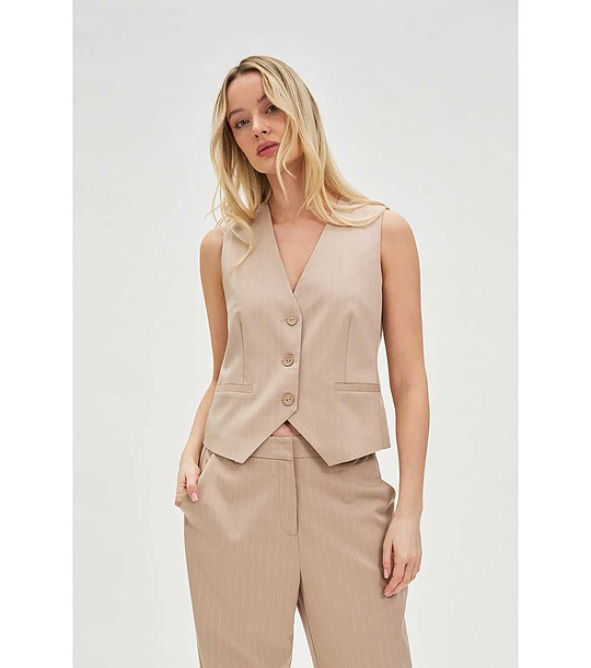 Moodo Vesta de dama bej deschis cu dungi fine Decolteu în V
