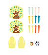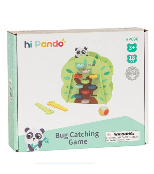 Setul include 18 piese: un copac de lemn cu un panda; 12 omizi colorate pentru sortare și mutare; 2 viermi (galben și verde) pentru joc interactiv; 3 platforme din lemn; zaruri din lemn multicolore.
