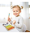 Setul include un băț de lemn cu care copilul își poate crea propriile melodii, dezvoltându-și în același timp ritmul, dexteritatea și dragostea pentru muzică.