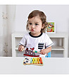 Jucăria este fabricată din lemn de calitate, metal și vopsele sigure, potrivite pentru copii.