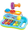 Un alt joc distractiv, colorat și educativ pentru copiii tăi, care îi va introduce în lumea muzicii. Xilofonul are 6 taste, fiecare dintre ele colorată într-o culoare diferită și etichetată cu literele A, B, C și cifrele 1, 2 și 3. Astfel, copilul va învăța să recunoască literele, cifrele și culorile tale. În partea de sus sunt trei găuri și trei bile care trebuie adăugate de sus și lovite cu ciocanul astfel încât să cadă în prize. Când cad, lovesc xilofonul și scot sunete diferite. Jucăria dezvoltă copiilor simțul ritmului, abilitățile muzicale și motorii, dexteritatea și gândirea logică.