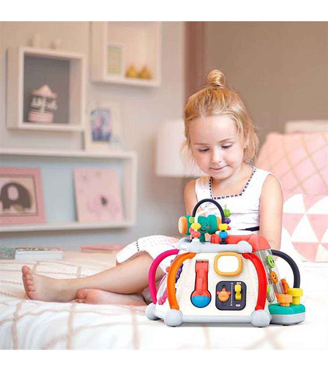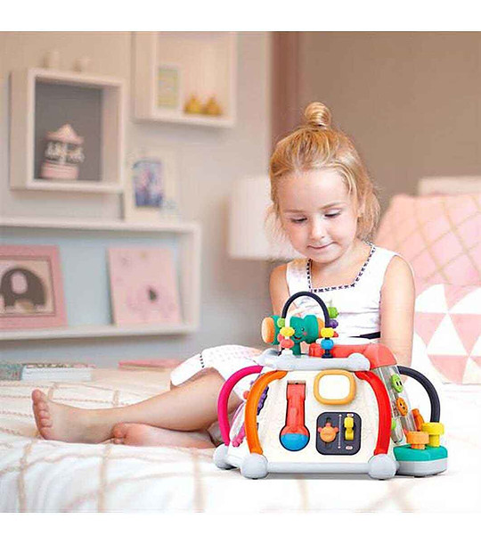 Zona de joacă interactivă pentru bebeluși este o ofertă irezistibilă de la noi. Interactivă, distractivă și educativă, jucăria este potrivită ca cadou pentru orice ocazie, dar fiecare părinte va fi pe deplin mulțumit dacă o achiziționează pentru copilul lor fără ocazie. Colțul interactiv pentru bebeluși de la HOLA îi va încuraja pe micii exploratori să fie și mai curioși și să creadă în miracole. Când copilul tău învață să activeze doar sunete sau diferite jocuri, atunci se va simți infinit de fericit că faci lucruri distractive cu mâinile tale mici. Zona de joacă interactivă pentru bebeluși, Happy Children's World, are un design minunat și o varietate de jocuri educative. Jocul cu el va dezvolta cu siguranță inteligența bebelușului, copiii vor observa și vor explora interacțiunea dintre acțiuni, sunete și mișcare. Jucăria interactivă pentru bebeluși este recomandată copiilor peste 18 luni, dar și copiii mai mici se vor distra cu ea. Jucăria reușește să stârnească imaginația celor mai mici, precum și să fie educativă. Are șase pagini interactive, inclusiv 15 jocuri distractive și dinamice: Un joc pentru șoferii mici. Rotiți cheia pentru a declanșa sunetul automat al motorului. Apăsați claxonul pentru a scoate un sunet. Rotiți volanul. Căruciorul verde se va mișca împreună cu volanul. Joc cu unelte. Rotiți vitezele. Vei auzi muzica. Vei activa lumea subacvatică a peștilor. Observați această scenă magică a mării. Apăsați tasta pentru note muzicale pentru a auzi muzică. Apăsați tasta „Star” pentru a schimba muzica. Un joc cu un telefon. Bebelușul va putea vorbi la telefon. Cântând cu toba. Loviți toba și va reda sunete distractive și efecte de lumină. Joaca cu margele colorate Joaca cu margele colorate va exersa abilitatile motorii fine ale copiilor, acestia pot incerca sa numara si sa invete culorile. Oglinda magica si microfon. Deschide microfonul și o imagine minunată va apărea în oglindă. Vei auzi o voce și un cântec. Dimensiune jucarie: 31,5 x 29,5 x 23,5 cm