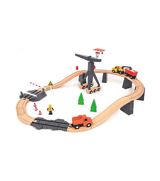 Aici lipsește trenul clasic, dar, în schimb, micul inginer trebuie să-și folosească imaginația construind șinele de tren, cu ajutorul unei macarale mari și a mașinilor de construcții care se mișcă lin de-a lungul acestora.