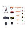 Setul este format din 35 de piese: șine, macara, mașini de construcții, indicatoare, muncitori în construcții și obiecte care întăresc și completează proiectarea șantierului.