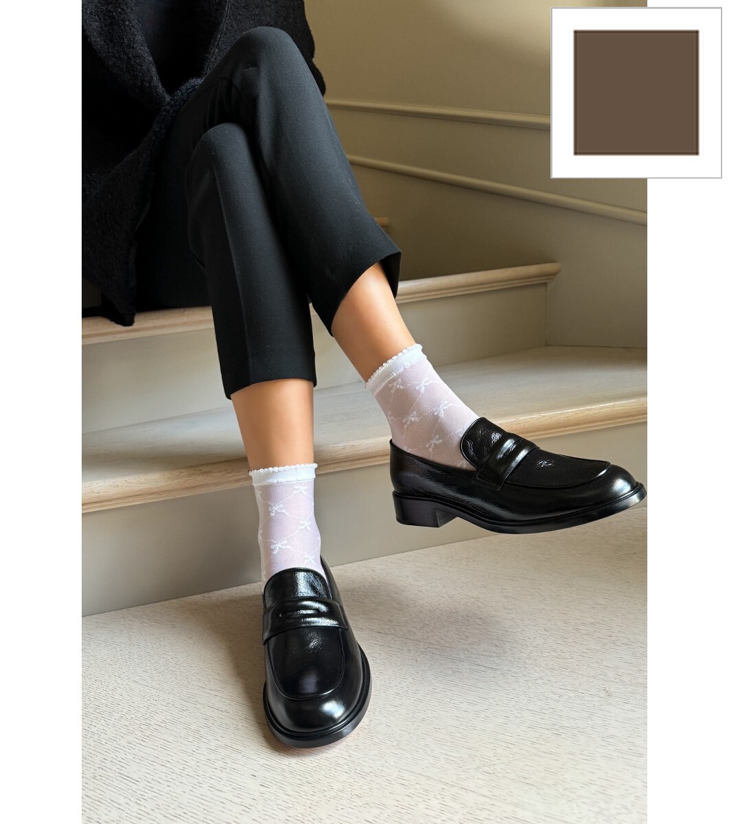 Șosete LIVIA gri-maro cu panglici