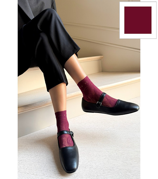 Șosete MILANO vișinii pentru femei cu motive florale ajurate