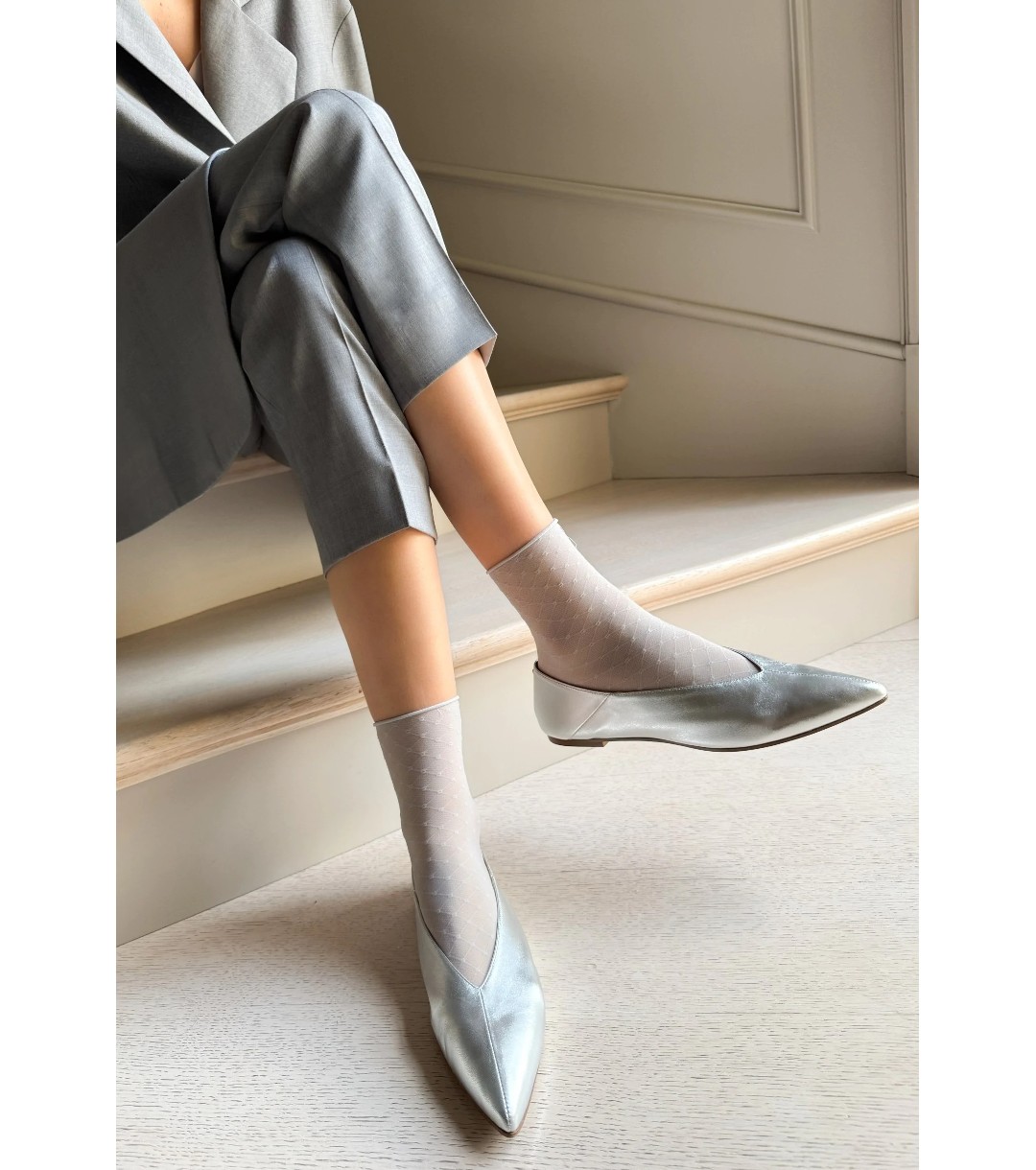 Șosete argintii de damă cu motiv geometric SOFIA