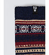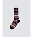 Șosete bărbătești tricotate, cu lungime până la gambă și model geometric multicolor pe toată lungimea. Margine superioară elastică. Etichetă textilă mică cu sigla producătorului în partea de sus.