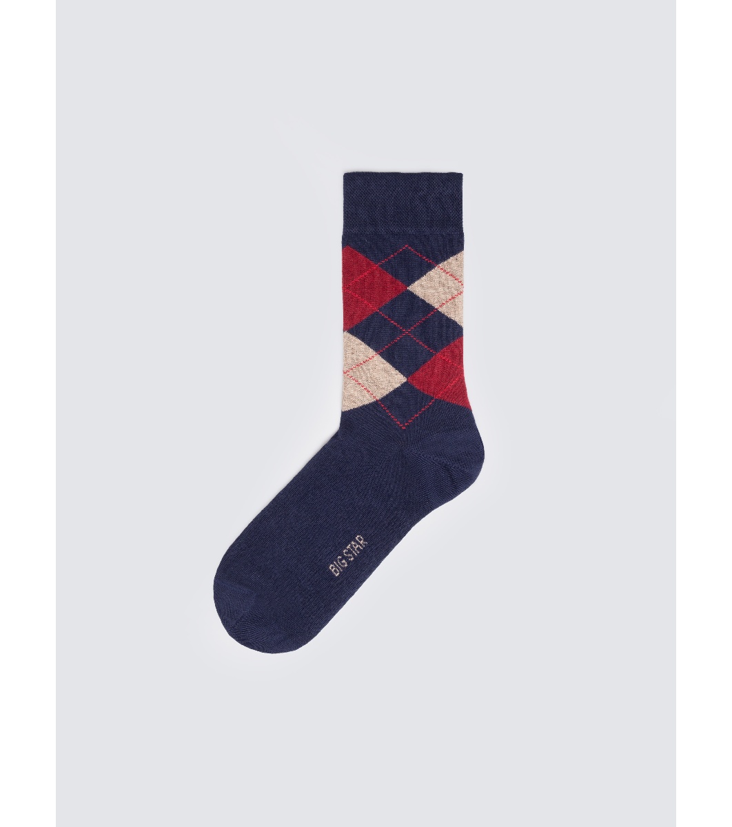 Big Star Șosete bărbătești din bumbac albastru închis cu romburi Șosete până la gambă cu model cu romburi.