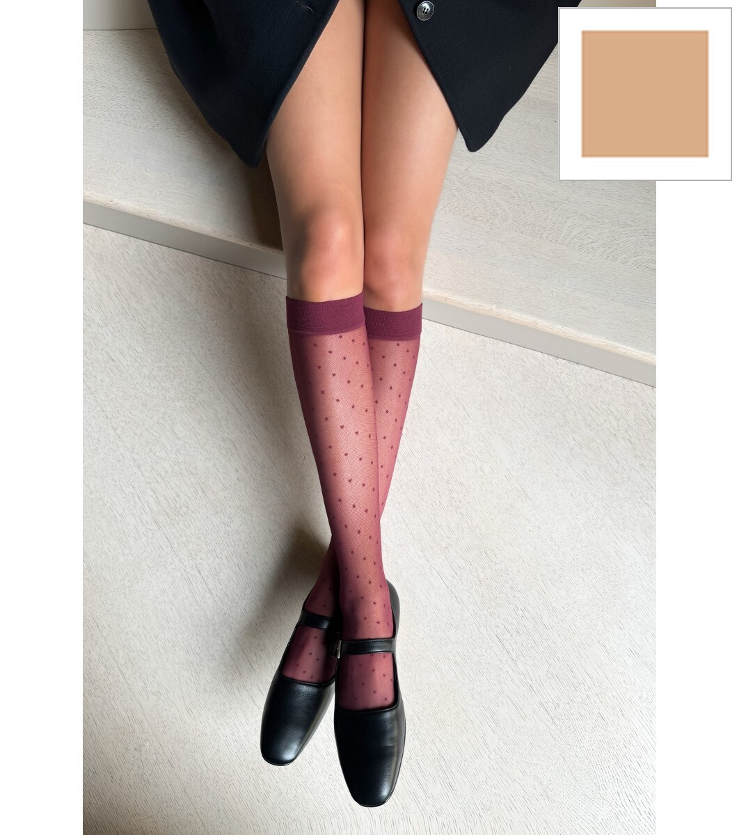 Șosete damă cu buline, culoare nud, 20 DEN PUNTINI