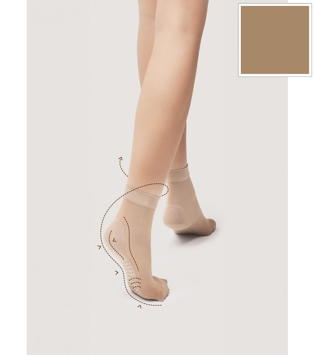 Șosete fine 20 DEN cu efect de masaj profilactic asupra piciorului și elastic confortabil, fără a strânge. Cu tehnologie Silver Fresh pentru a menține o senzație de uscăciune și a limita dezvoltarea bacteriilor și ciupercilor.