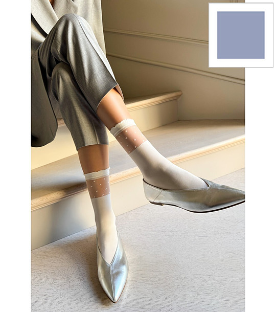 Șosete de damă BIBBI albastru azur cu detalii din tul