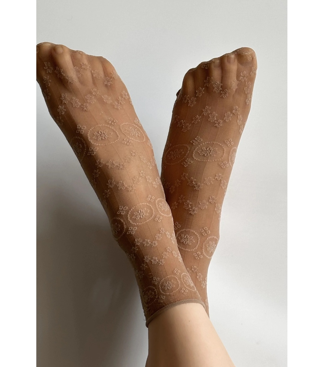 Șosete de damă FABIENNE de culoarea nurcii cu motiv floral