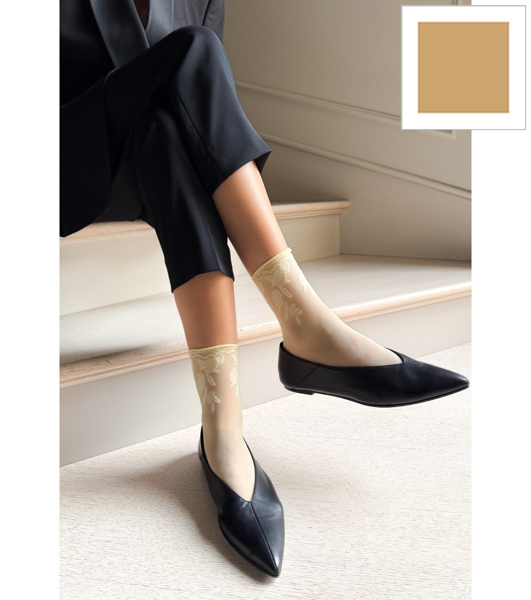 Șosete de damă JANA în culoarea nurcii cu motiv floral