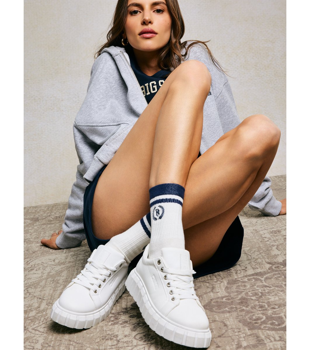 Big Star Șosete de damă Prepalia în alb și bleumarin Material cu conținut ridicat de bumbac