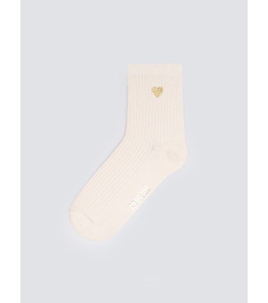 Big Star Șosete de damă crem Sonja Broderie cu inimă