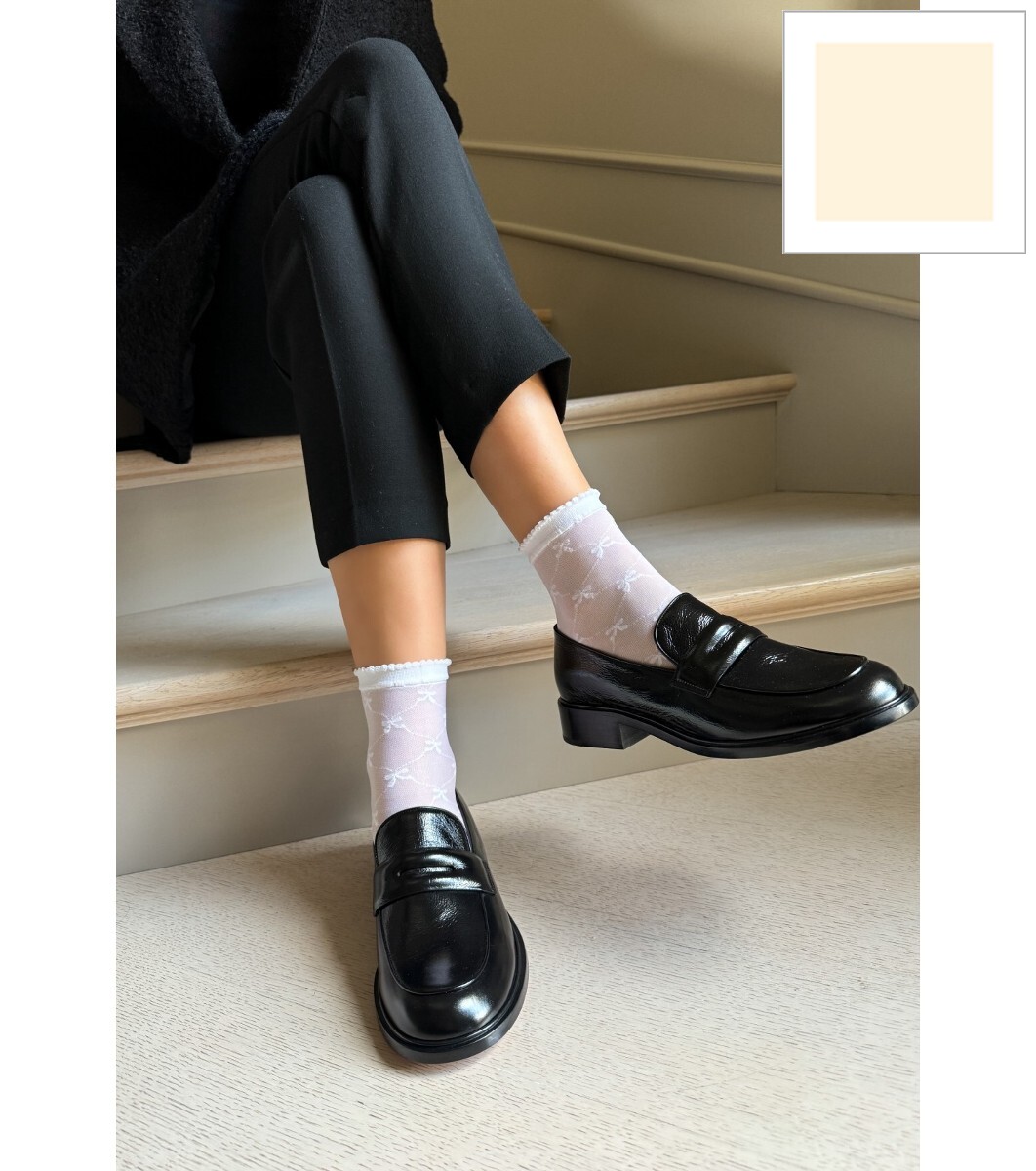Șosete de damă crem cu panglici LIVIA