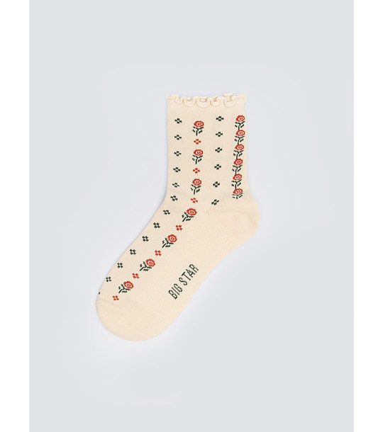 Big Star Șosete de damă cu motive florale Flori Bucle în partea de sus