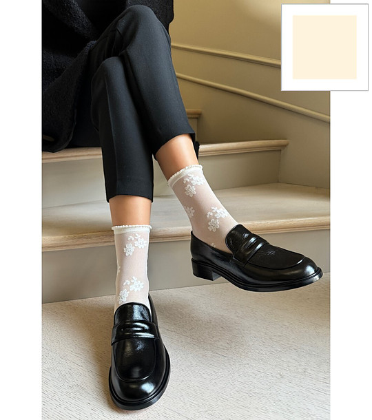 Șosete de damă de culoare crem cu motiv floral FIORELLA