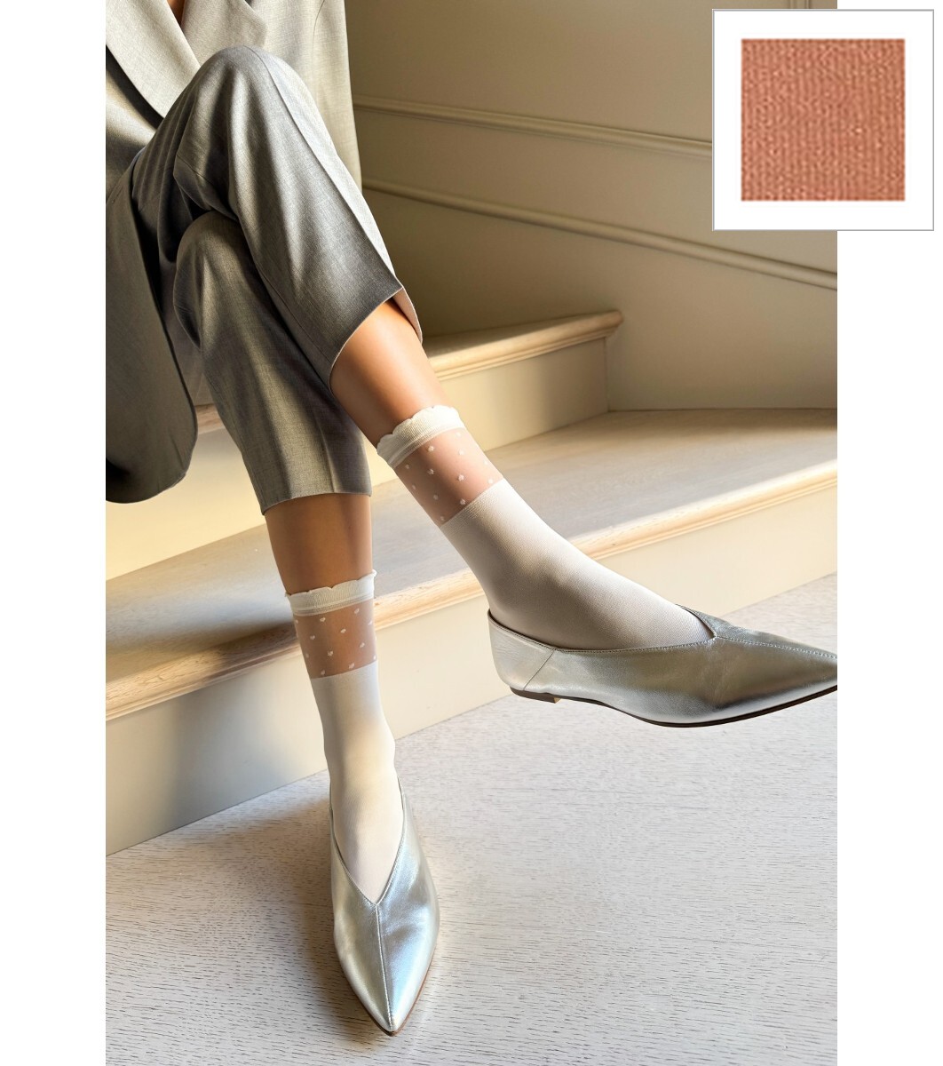 Veneziana Șosete de damă de culoarea piersicii cu accent de tul BIBBI