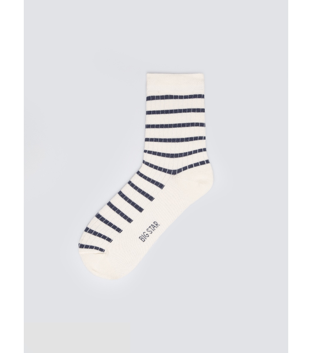 Șosete de damă din bumbac crem cu dungi bleumarin