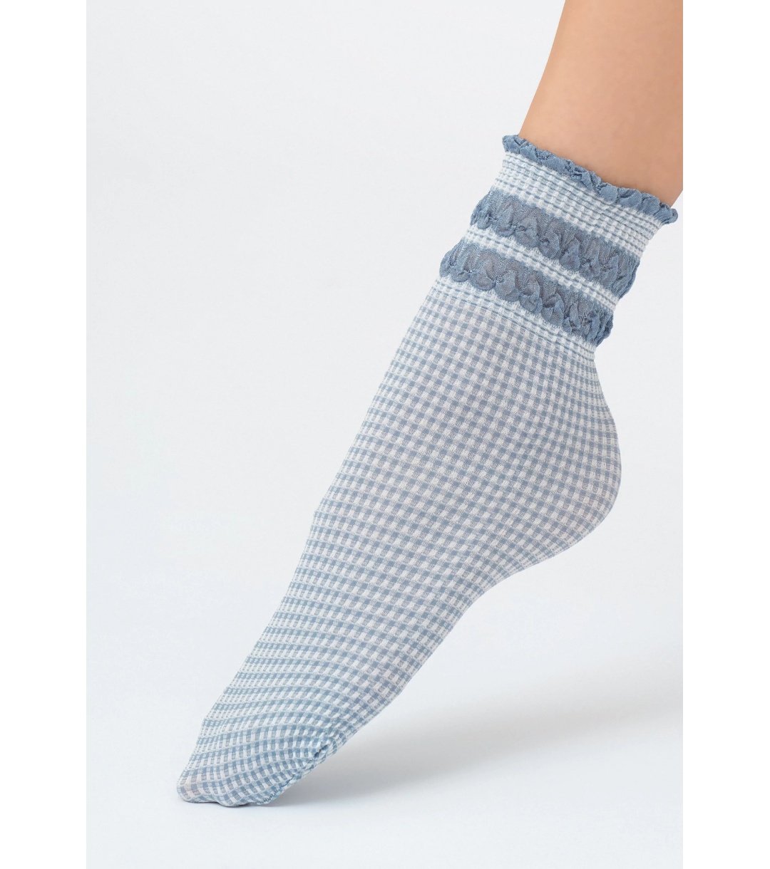 Șosete de damă în culoarea denimului LISETTA cu model în carouri