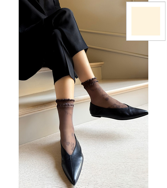 Șosete ecru pentru femei cu motiv floral GALENA